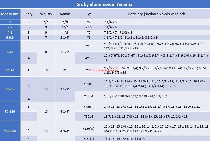 Aluminiowa śruba napędowa do silników zaburtowych typu: Yamaha 2 KM.
